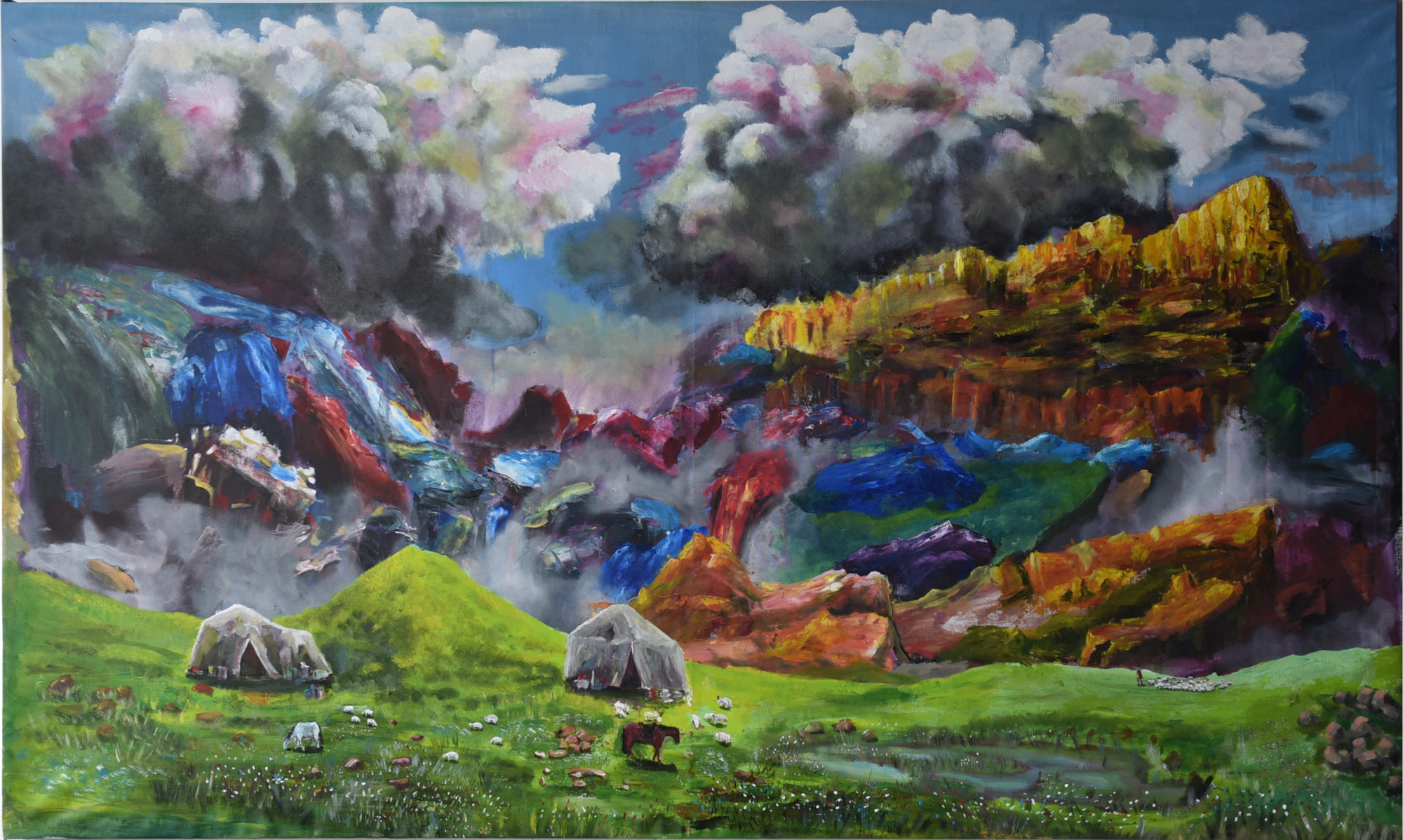 Kullandığım renkler ve güçlü fırça darbeleri yalnızca içsel bir kaydı değil aynı zamanda dış dünyayla eleştirel ve duygusal bir bağ kurma çabamı yansıtır. Yerel köklerimden beslenerek oluşturduğum bu dünya aslında her insanın içinde taşıdığı o aşılması güç dağların ve bitmeyen yaşama tutunma arzusunun bir temsilidir.
